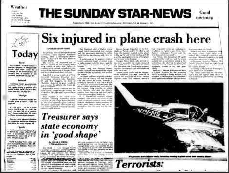 The front page of the Wilmington Star-News from October 5th 1975. Courtesy of StarNewsOnline.com.